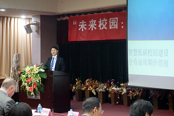 如何建設(shè)智慧低碳校園,周蕾博士有著自己的看法。他坦言校園建筑的多樣化、管理的復雜性以及社會關(guān)注度決定了校園節(jié)能減排解決方案是個系統(tǒng)化的綜合方案。通過合同能源管理機制,加強對新能源的利用是對現(xiàn)有校區(qū)的改造方式。對于新校園建設(shè)則需要充分利用現(xiàn)有的土地資源與自然景觀進行規(guī)劃建設(shè),大力推廣綠色建材、新型材料,同時實現(xiàn)項目從規(guī)劃、設(shè)計到施工的運行維護一體化的網(wǎng)絡(luò)管理平臺的建設(shè),校園綜合能源檢測平臺系統(tǒng)的建立對整個校園的碳排放量進行統(tǒng)計,同時利用大數(shù)據(jù)原理建立高效碳排放信息庫。