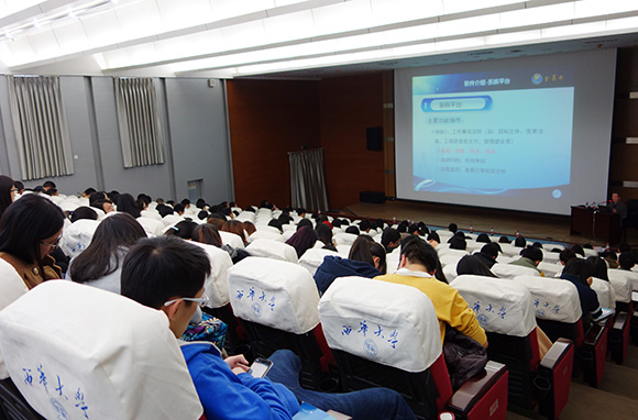 儀式結束后,周和生董事長為建筑與土木工程學院學生及相關部門工作人員作了題為“建設項目全過程投資管理及審計系統介紹”的學術報告。